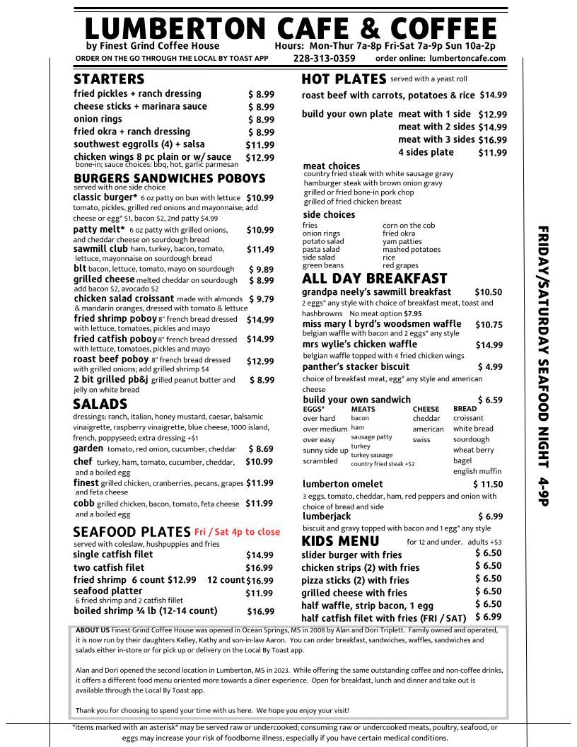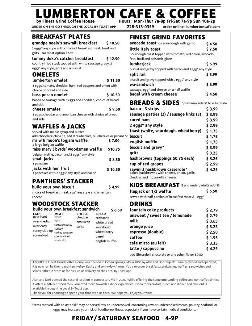 Welcome to Lumberton Cafe by Finest Grind Coffee House, a charming gem nestled in the heart of Lumberton, Mississippi. This delightful cafe is not only a sanctuary for coffee lovers but also a haven for anyone seeking a delectable breakfast or lunch experience filled with Southern hospitality and comfort food.